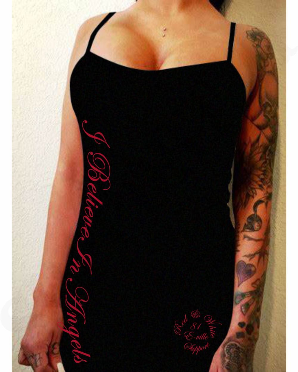 I Believe In Angels / Red & White 81 E-Ville Support – Ladies Spaghetti Strap Dress