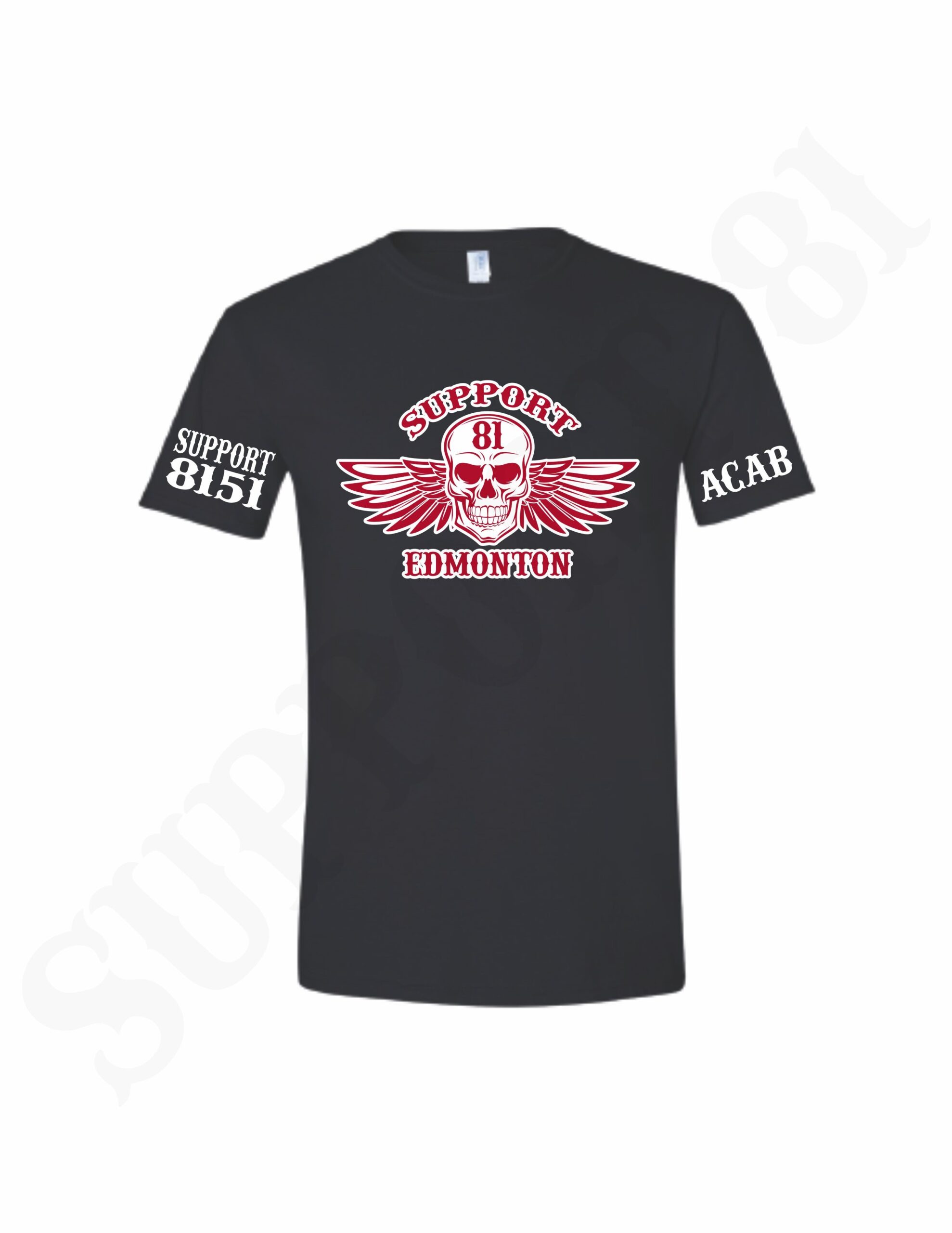Men's Black 81 Skull wing T-shirt With Support 8151 And ACAB On Sleeves